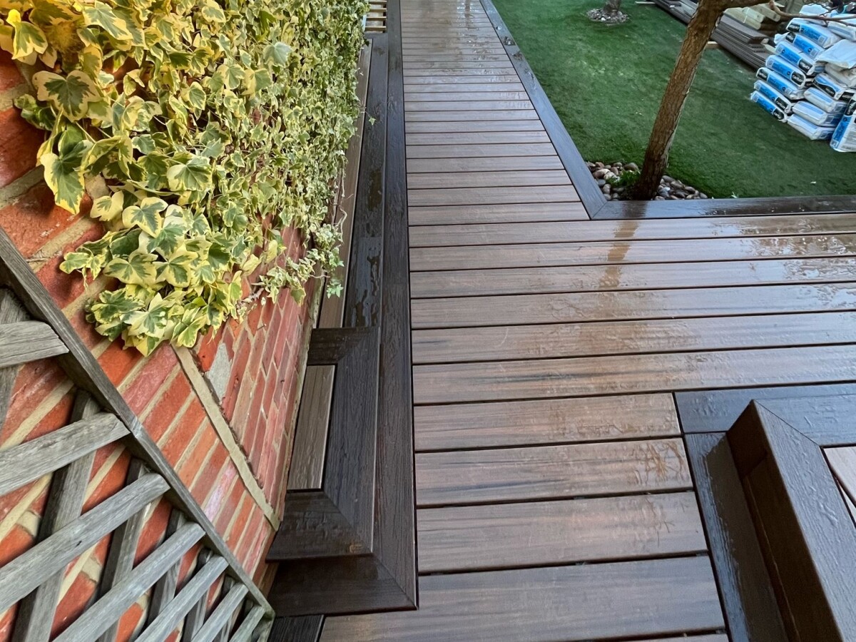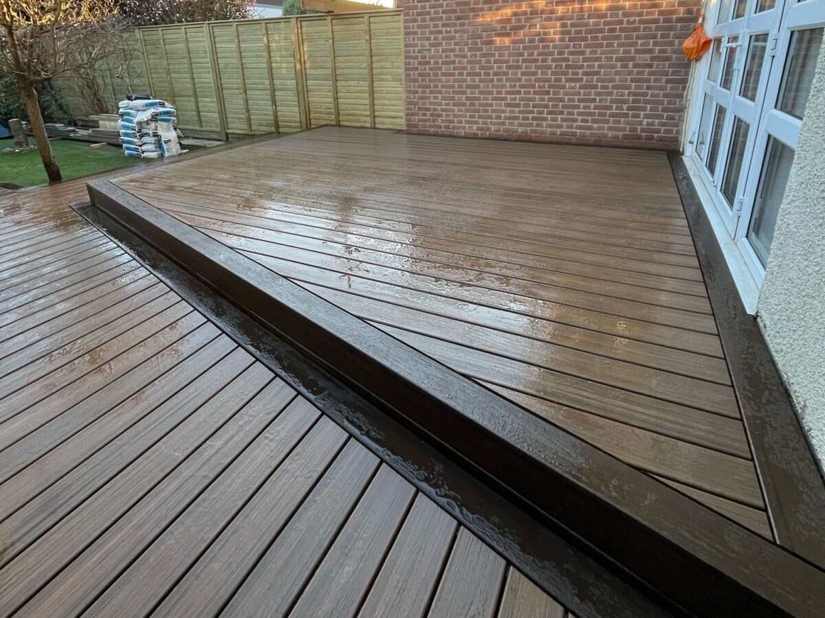 For our higher level of decking we used Use Class 4 Treated Timber Joists which are 50mm x 150mm dimension. For our lower level decking we used Use Class 4 Treated Timber which is 50mm x 100mm dimension. All of these timbers are treated to a much higher level than standard Treated Timber to ensure they last longer against insect attack wood rot.