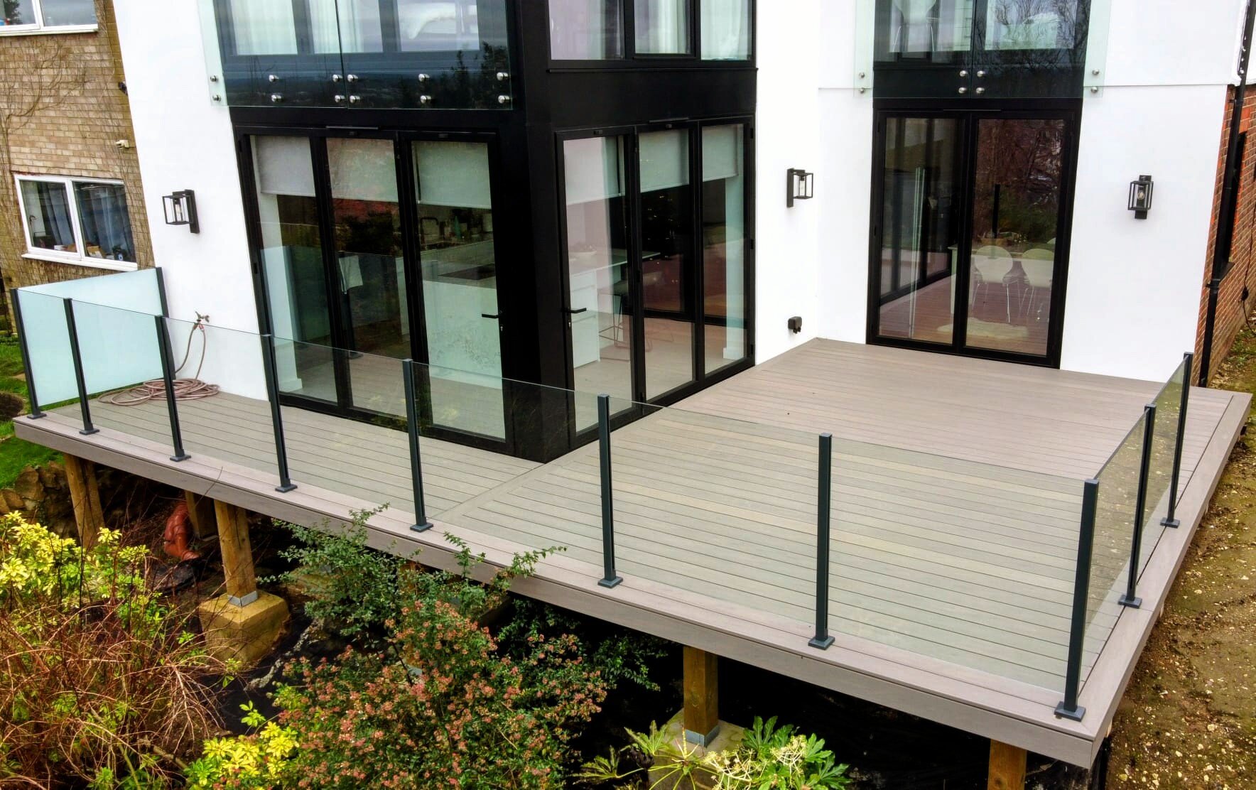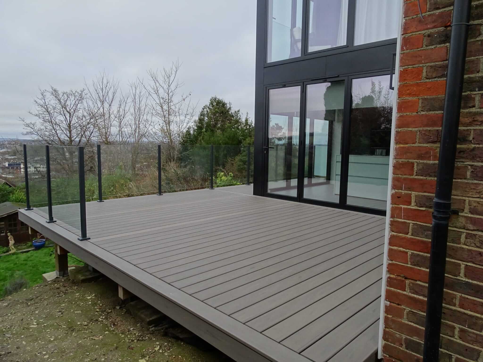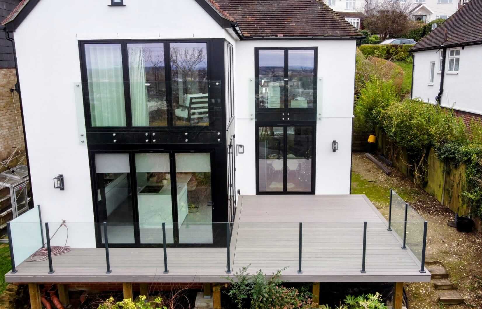 The clients used us as their Composite Decking Contractor in Guildford GU1 for the installation of their Trex Decking & Glass Ballustrades for their property which had recently had an extension added with new Windows and Doors.