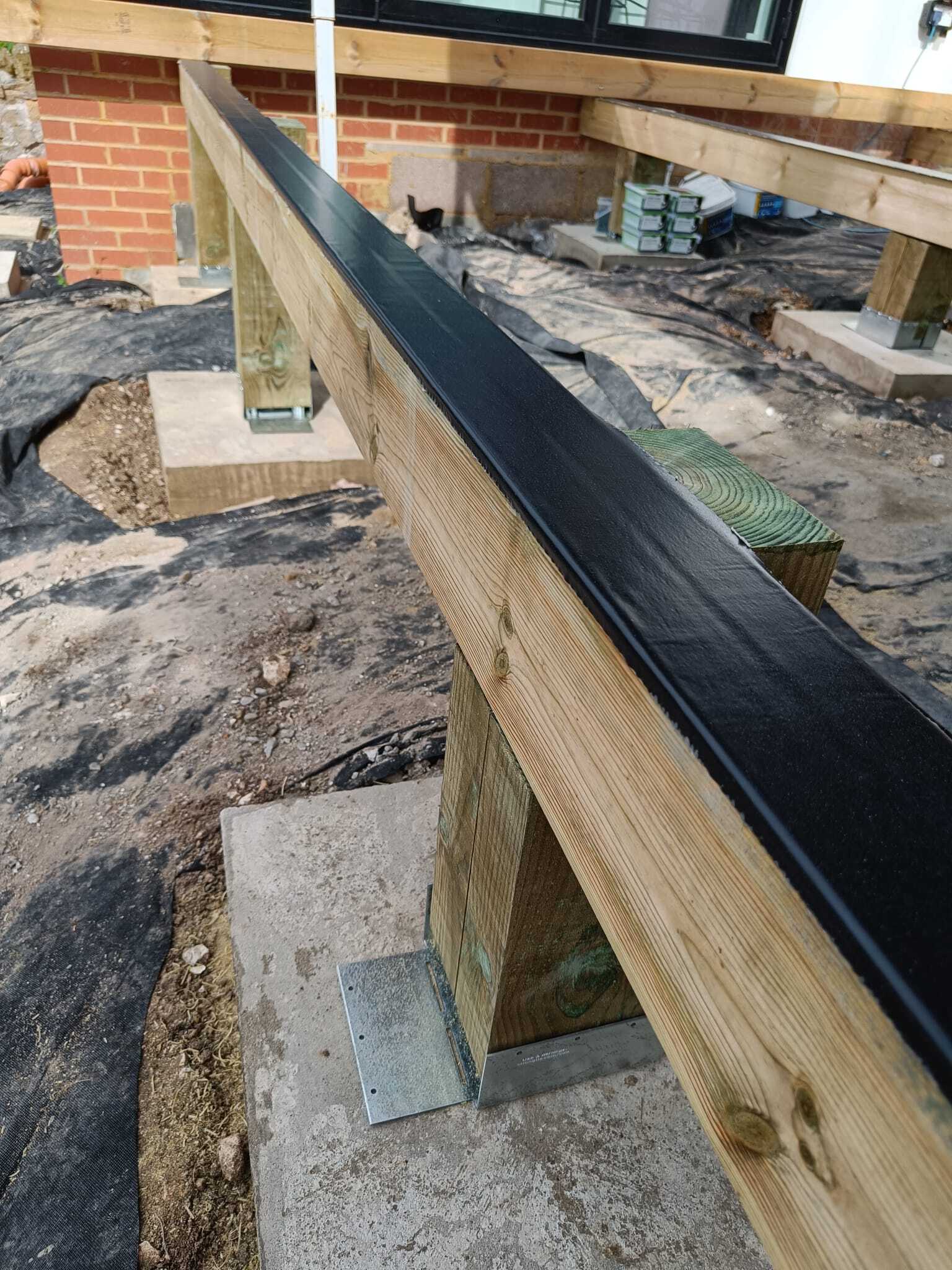 To further protect the frame we top all of our Joists with Trex Protect Joist Capping Tape. This is a butyl based tape which forms a waterproof seal around the screws, preventing water from travelling down the decking screw into the centre of the timber joist. This is again to prevent wood rot.